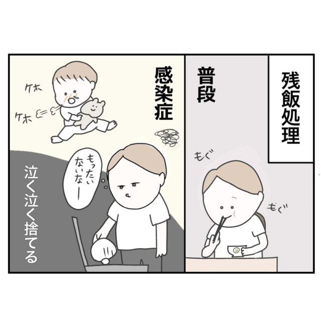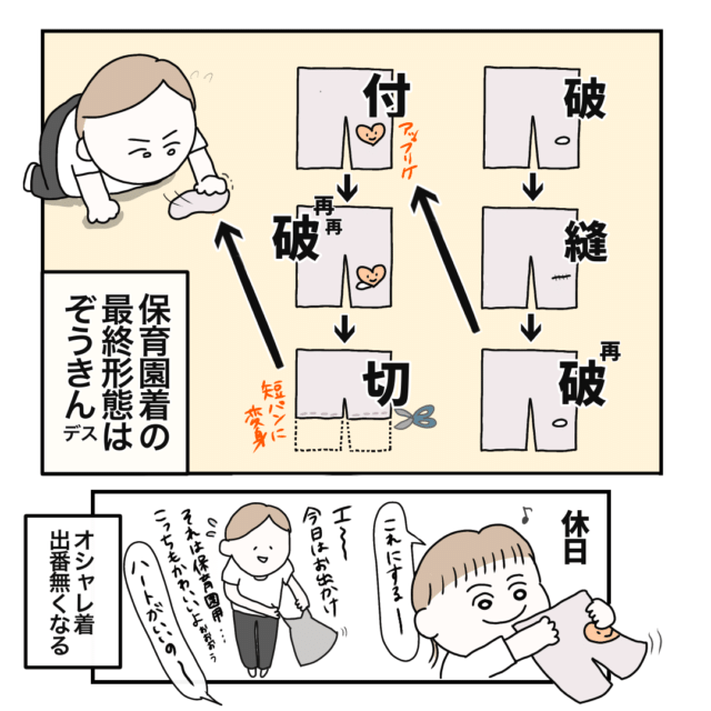 3. 服は破れたら縫う、着れなくなったら雑巾、子どもが残したごはんは食べる。私はもったいないママです。|ぬーこの育児漫画