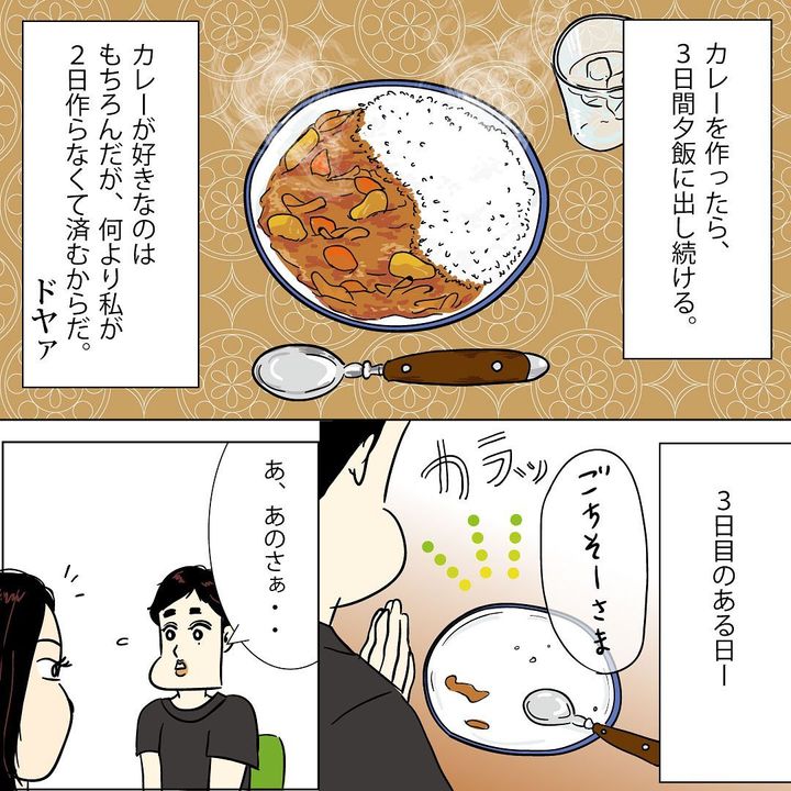 ささこもちさんはカレーを作ったら、3日間夕飯に出し続けるそうで…?