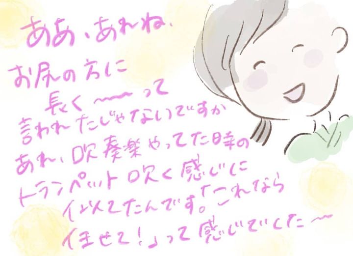 お産は未経験でも、近い経験があったとは…! 投稿元のコメント欄には「出産は20年以上前ですが...合唱部だったので、腹式呼吸でばっちりって言われました」「いきむのは体育会系でいうところの『ベンチプレスの感覚』(ベンチに寝転んでバーベルをあげる筋トレ)と同じ」などの声が寄せられていました。