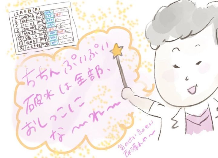 状況を確認し、「破水は帰宅させられないし…部屋も埋まってる…こうなったら…」と言う女医さん。助産師さんたちが「応援の先生呼ぶのかな…?」と息をのんでいると…? なんと、「ちちんぷいぷい。破水は全部、おしっこにな〜れ〜」と魔法をかけたのでした!