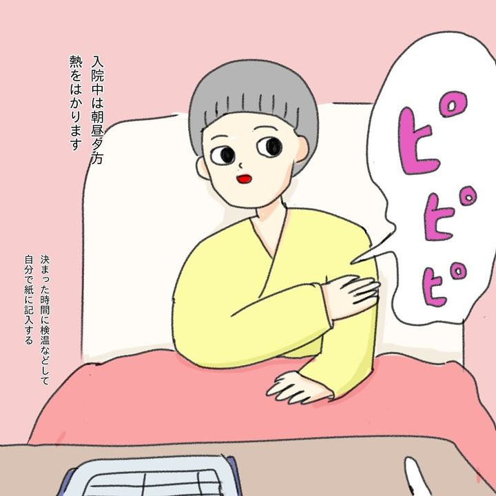 入院中、1日3回検温している、ははこさん。ある朝、少し熱があったようで…?