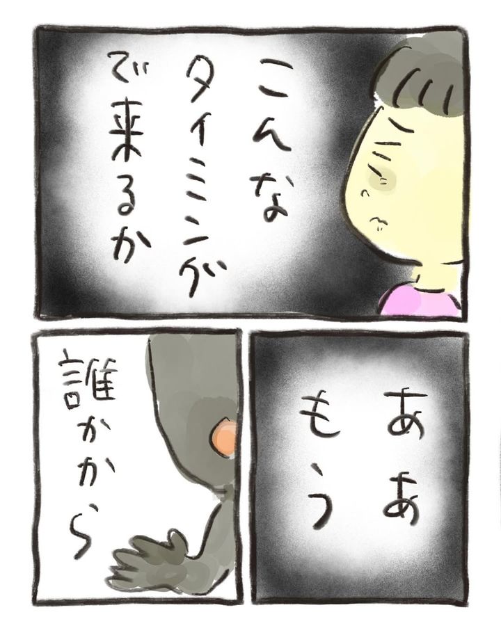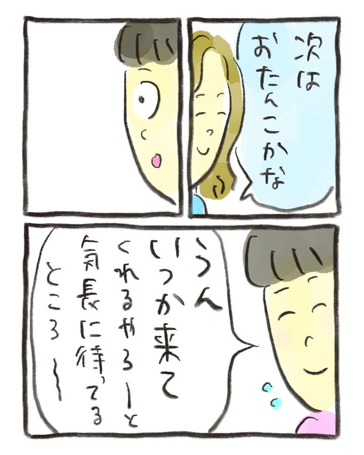おたんこ助産師さんの友人たちは、絶賛子育て中。話の内容も育児のことが中心で、なかなか子宝に恵まれなかったおたんこ助産師さんは、複雑な気持ちになったようです。なんとか笑顔で「いつか来てくれるやろーと気長に待ってるところ」と答えるも、そんなタイミングで生理がやって来て…。「君はまだだよ」と誰かに言われている気分になって、切なくなったのでした。