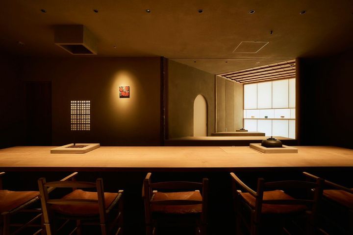 かつて茶会は身分に関わらず誰もが楽しむ文化だった。しかし、現代では限られた人だけのものとなっている。「茶聖」と称される千利休への敬意を込めて名付けられた「九九九(くくく)」では、この貴重な文化を再び多くの人に広めるべく、唯一無二の体験を提案。茶室の要素を取り入れながらも、気軽に茶を楽しめる野点のような雰囲気も持ち合わせた店内で、日本の飲食シーンではまだ珍しい和菓子のコースを提供する。緊張感と安らぎ創出するアートや骨董品も誂えた。
