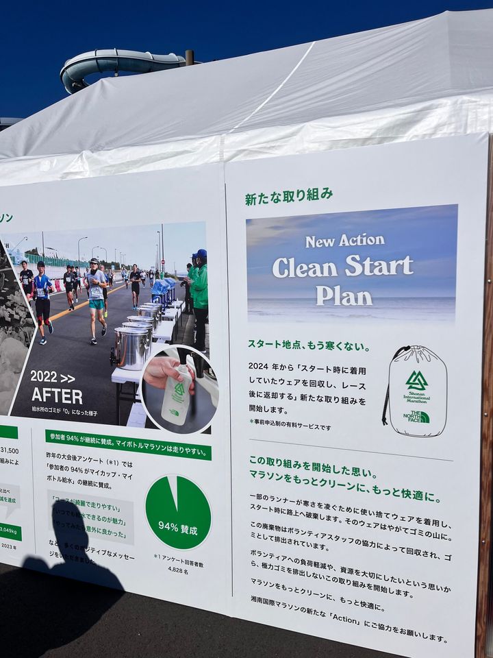 寒さから身体を守りつつ廃棄物削減にも繋がる、ランナーにも環境にとっても優しい活動でした。