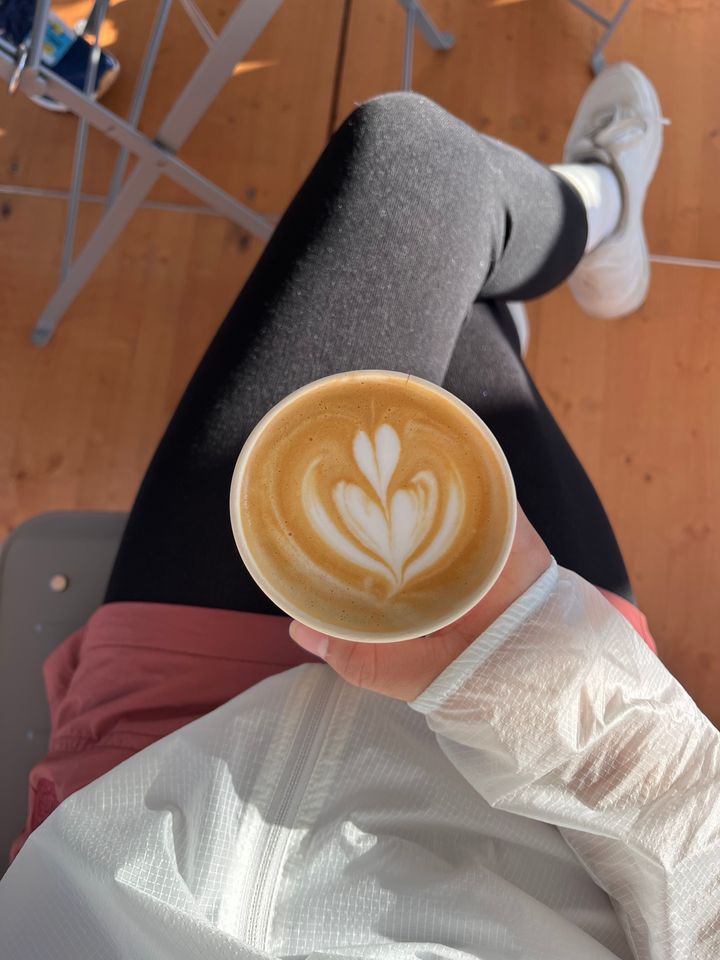 走る前にカフェラテでほっとひと息。