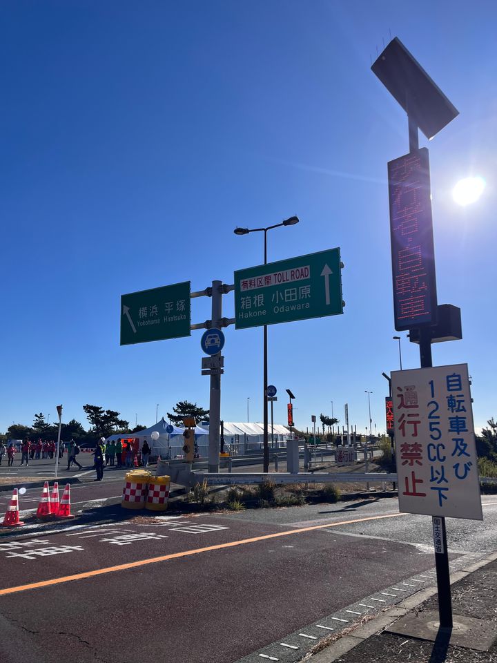 大磯プリンスホテルからスタートし、大磯の海岸を横目に海沿いの高速道路上を走りました。