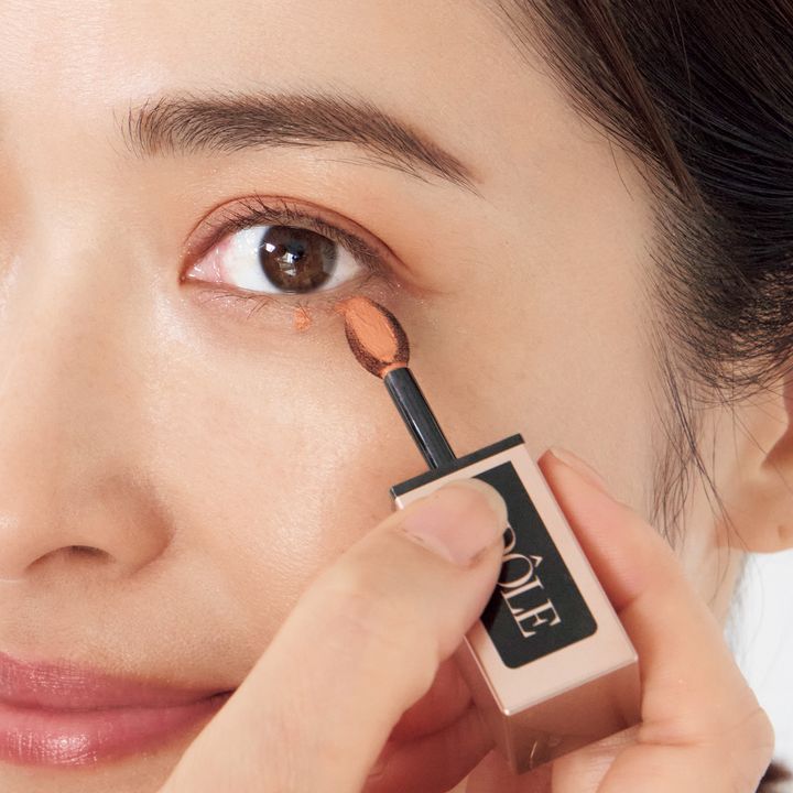 ④指で優しくトントンと広げすぎないように軽くぼかします。大人っぽく洗練された魅力を引き出すコーラルオレンジ。マルチに使えるリキッドアイシャドウ。