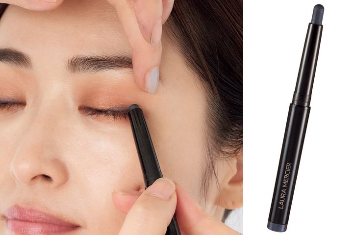 目元をケアする2種の保湿成分と、独自のパール配合、クリアな発色ときらめきで目元の美しさを際立たせるネイビーカラー。忙しい時でもさっと描けるスティックタイプ。¥3,850(ローラ メルシエ ジャパン)
