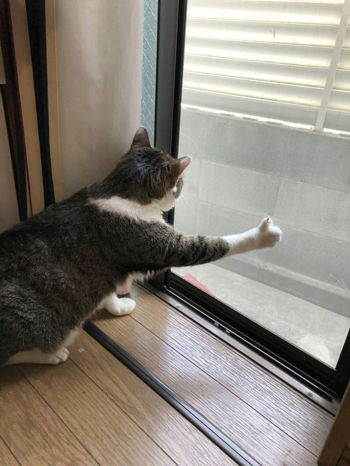この記事ではX(旧Twitter)でバズった投稿を紹介します。今回紹介するのは埴井(@Honey0582)さんが投稿していた愛猫のおもしろエピソードです。わんちゃんや猫ちゃんと暮らしていると、まるで人間のような行動をしたり、ふとした瞬間が意図せずとてもおもしろかったりしますよね。埴井さんが飼っている猫ちゃんはある日、とてもかわいい状態で外を見ていました。