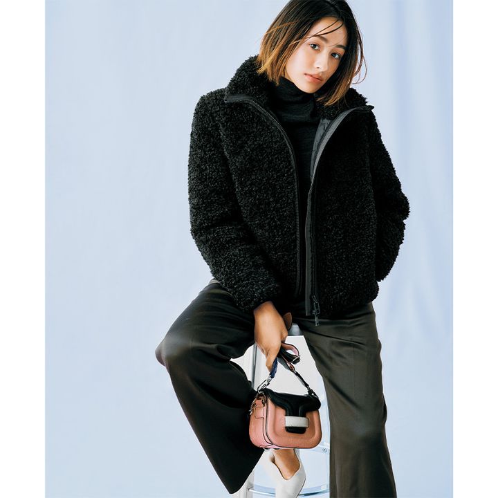 防寒ボアは黒ならちょうどいい存在感に♡(VERYWEB・柴田三緒)