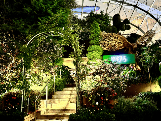 フラワードームの中には、地中海料理を味わえる「Hortus」というレストランもあるので、ガーデン・ラプソディが始まるまでに夕食を楽しむこともできますよ。