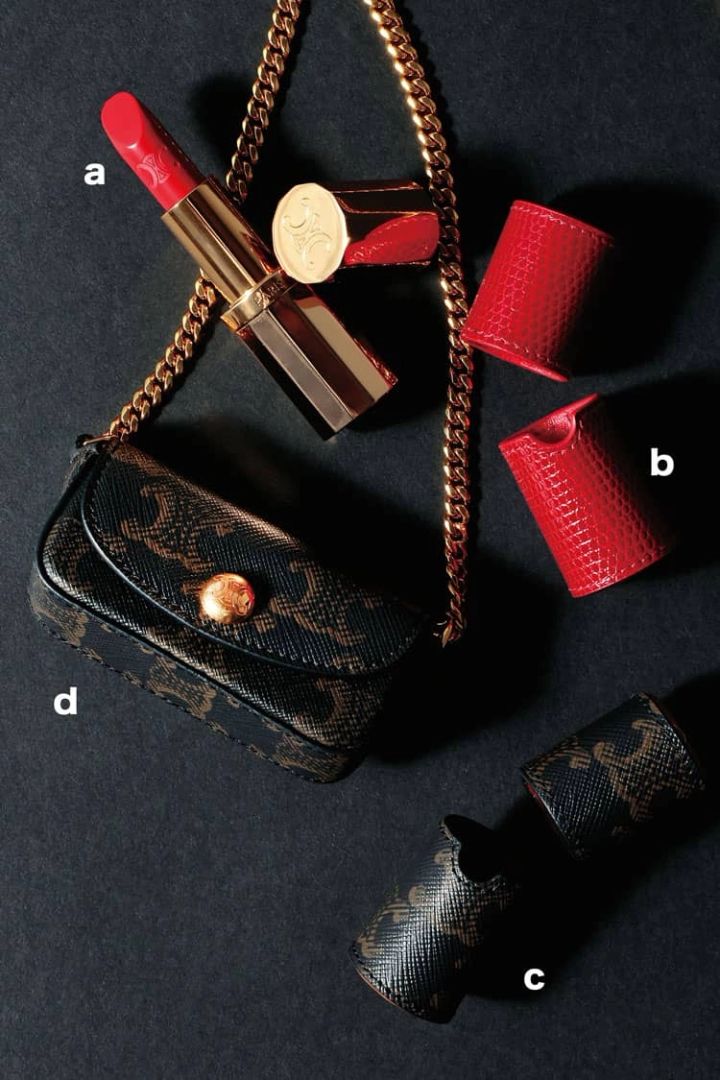 【a】セリーヌ ボーテ ル・ルージュ・トリオンフ 01 9,020円【b】同 赤リップケース 159,500円【c】同 トリオンフ柄リップケース 61,600円【d】同 チェーンつきリップスティックケース 93,500円(すべて予定価格)/以上セリーヌ ジャパン