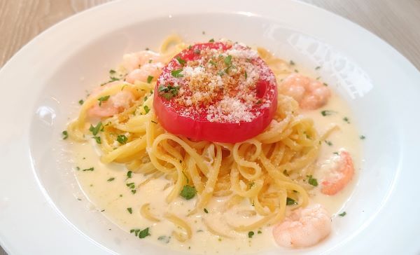 エビとズワイガニのクリームソース ローストトマトを添えて~バジルの香り~(1‚680円)