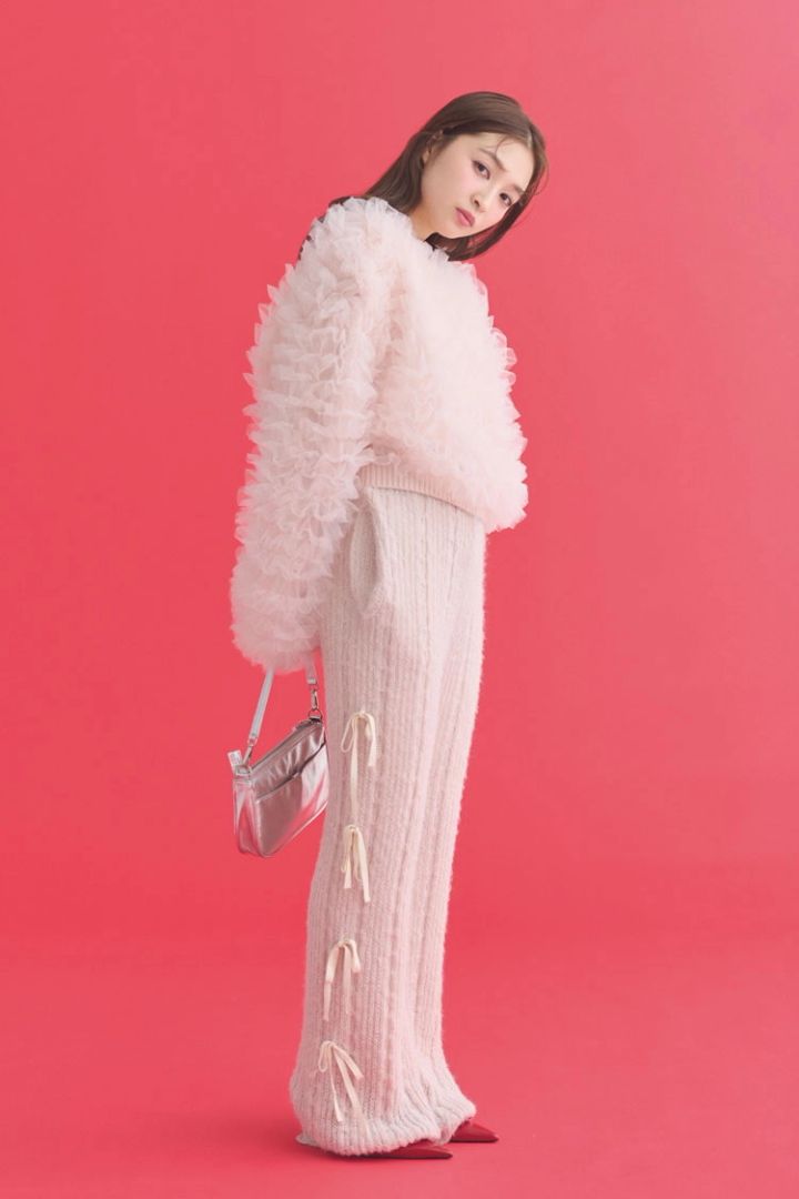 ピンクリボンニットパンツ 20,900円、ピンクチュールトップス 24,200円/ともにHONEY MI HONEY バッグ 14,960円/ペルケ(アンビリオン) パンプス 6,590円/ZARA(ザラ)