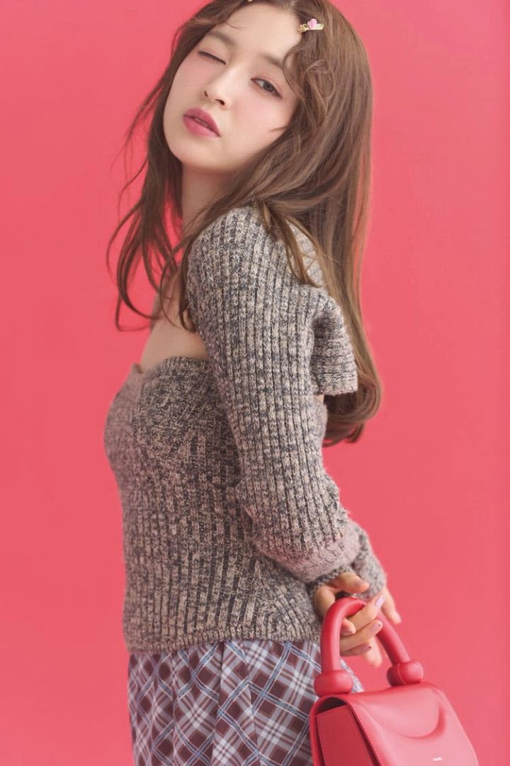 ギャルみが出がちな冬の肌見せは、チェックや赤でガーリー要素をプラス。レトロっぽな雰囲気でギャップを狙う♡