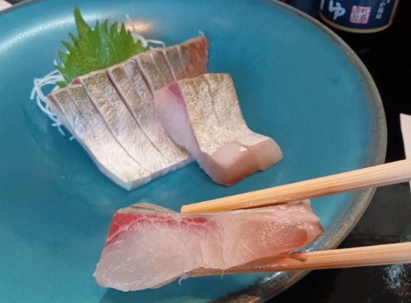 さわらを食べている間に大将がお刺身の柵をカットしていまして、最初に提供されたのはこちら↓しまあじです。