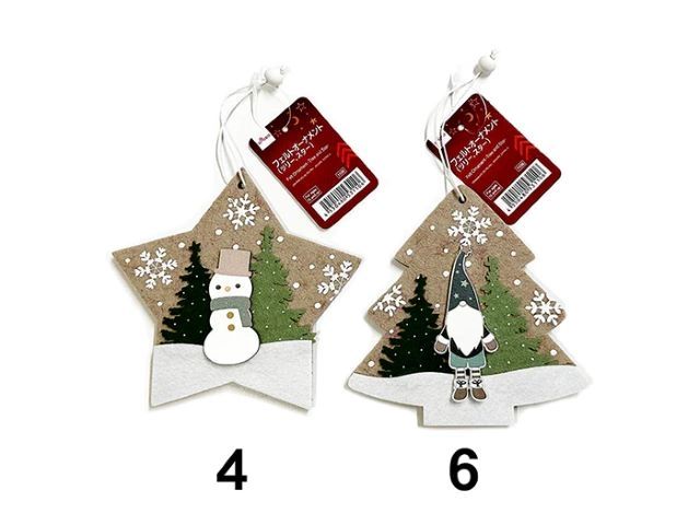 ・「フェルトオーナメント(ツリー、スター)」フェルトのやわらかい雰囲気を楽しめる