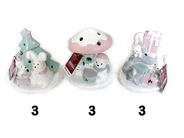 やさしい色合いのかわいいクリスマスオブジェ。そのまま飾るのはもちろん、電池を入れれてLEDライトを点灯させると、さらに幻想的な雰囲気をプラスできますよ。