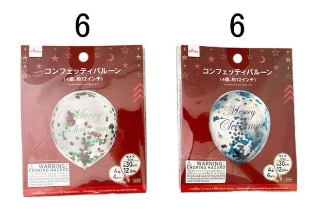 「Merry Christmas」の印字がされた表面に、中にはキラキラのコンフェッティが入ったバルーン。膨らませて部屋においておくだけでも、パーティーの写真を映えさせるアイテムになるはず。