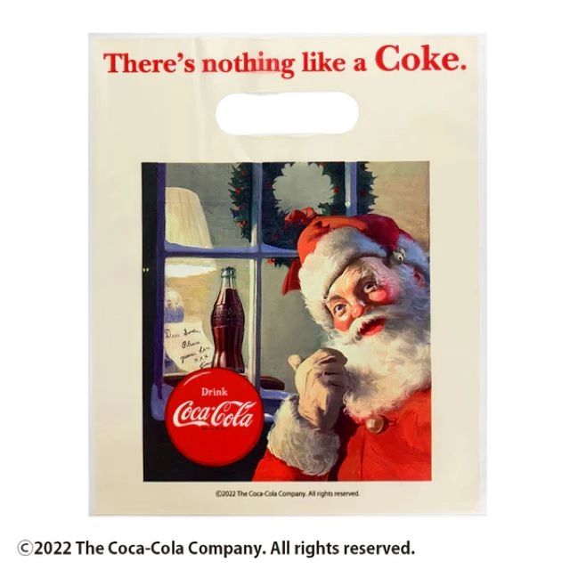コカ・コーラとサンタクロースがコラボしているハンドバッグ。袋にマチ部分がなくフラットな形なので、ちょっとしたプレゼントを渡したいときにおすすめですよ。