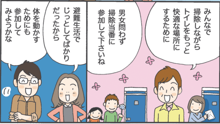 メディアなどではほとんど取り上げられませんが、被災地のトイレ問題は深刻です。日頃から、地域でどういう対応をするのか、防災訓練の時などに話し合っておいてほしいと思います。