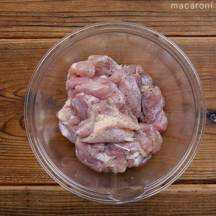 1: 鶏肉に【下味】を刷り込み、5分ほど置きます。