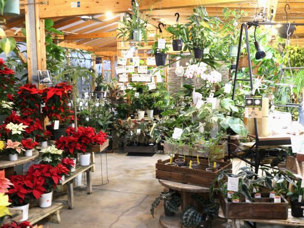店内中央辺りには温室のような空間があり、観葉植物や今の時期は、色とりどりのポインセチアが出迎えてくれます。 目にも優しい癒し系のグリーンと、色鮮やかなポインセチア。居心地が良すぎて何時間でも居られます♪