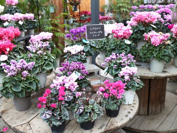 お店の方に今の時期のおすすめを伺うと、シクラメン、ポインセチア、ハボタンとのこと。なかでもシクラメンは、苗や鉢花など種類や色も豊富に揃っています。鉢花は贈り物にしても喜ばれそう!伺ったのは2週間ほど前。まだ入荷する予定とのことでしたので、さらに充実していることでしょう!