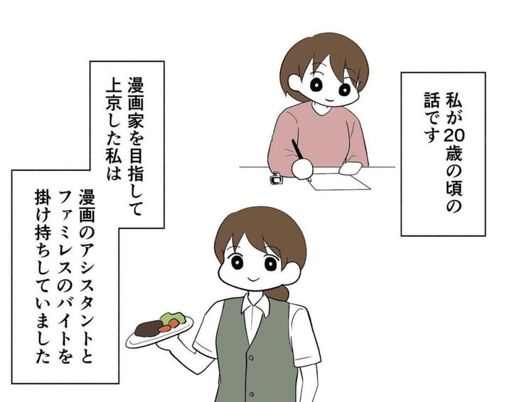 舞川さんは当時、20歳のころに漫画家を目指して上京をしてきました。当時はアシスタントをしながらファミレスのアルバイトを掛け持ちで行う忙しい日々を過ごしていました。