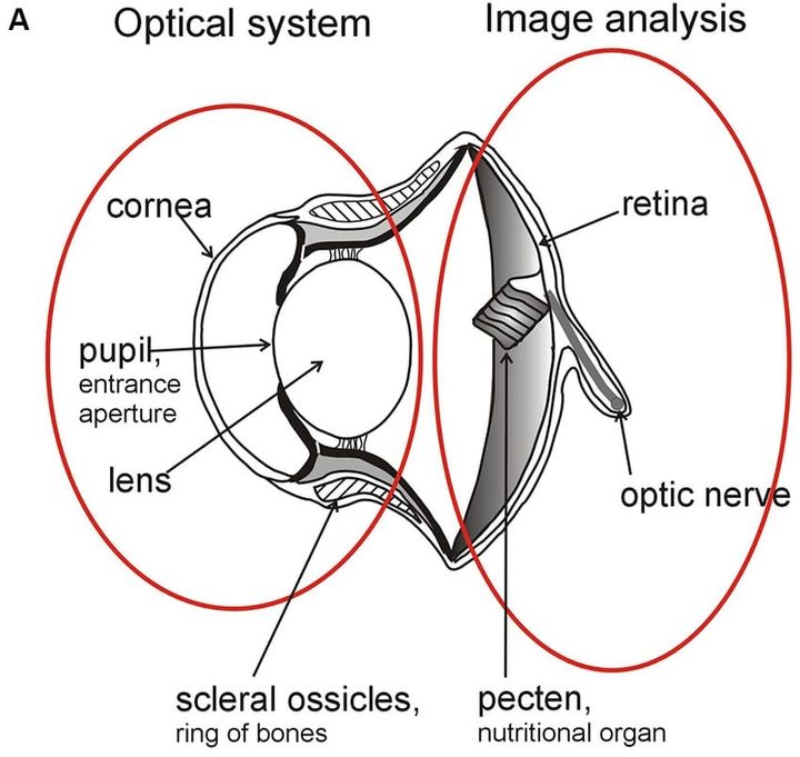 フクロウの眼球の構造/Credit:Graham R. Martin,Frontiers in Neuroscience(2017)