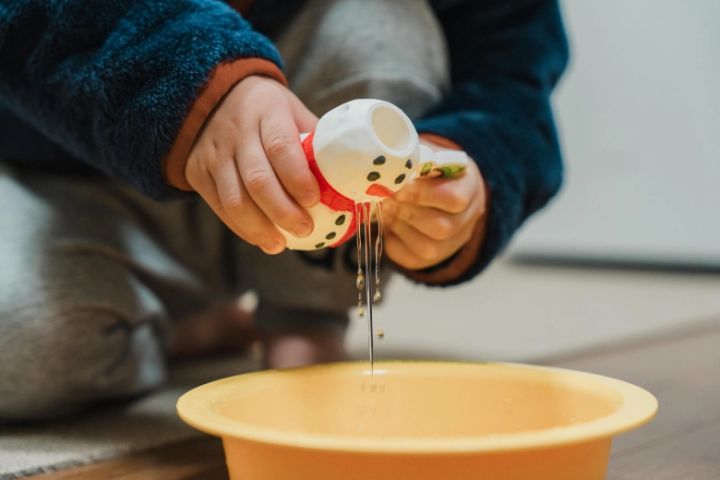 【ジョージとゆきだるまジョーロ】は上から水を入れて傾けると、穴があいた口の部分から出てくる仕組みになっています。