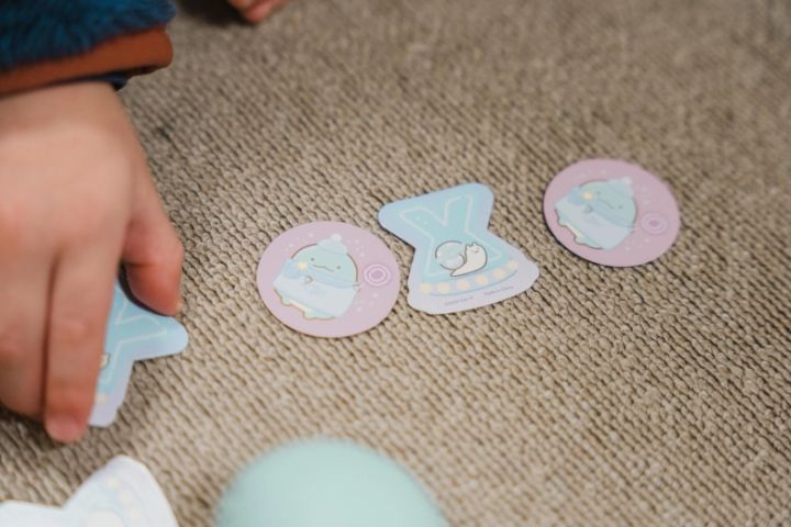 ケースの中には○×ゲームや絵合わせ、かるた遊びなどが楽しめるカードが入ってるので、お正月遊びにもピッタリですよね。【とかげ ○×ゲーム】に入っているシートは塗り絵にもなっていて、3歳の息子は上手に色を塗って楽しんでいましたよ♪