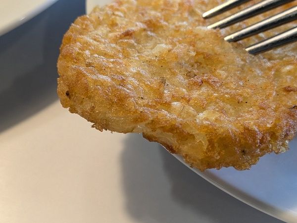 ハッシュポテトは、サクサク・ホクホクの香ばしい生地にジャガイモ本来の旨味とほんのり甘味があります。子どもから大人まで大人気です。