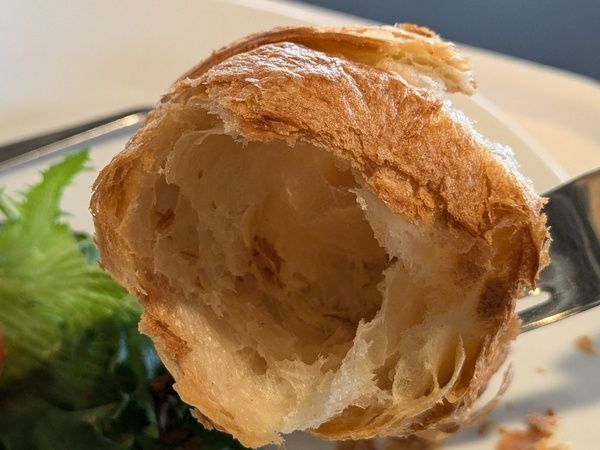 クロワッサンは、外はサクサク、中はふんわりした香ばしい生地に発酵バターのコクとほんのり甘味のある味わい。