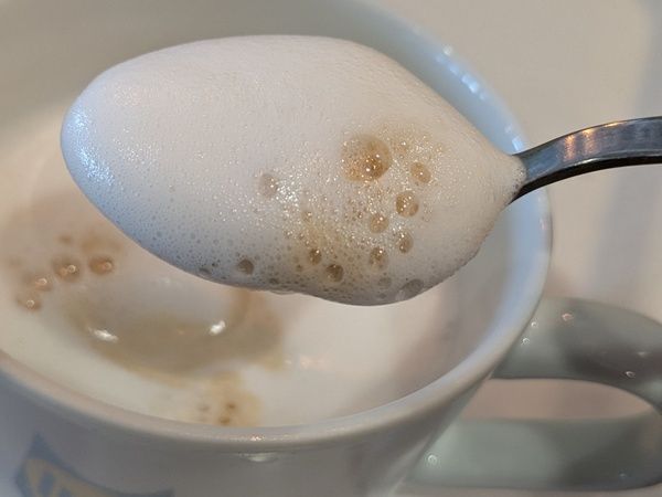 フォームミルクはふわふわできめ細かく、スプーンですくって甘味を感じられます。まろやかでコクのあるカフェラテは「クロワッサン」などとよく合います。