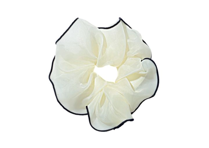 ボリュームのあるシアーシュシュで顔まわりに可愛げをプラスできる。シュシュ¥1,210/アネモネ(サンポークリエイト)