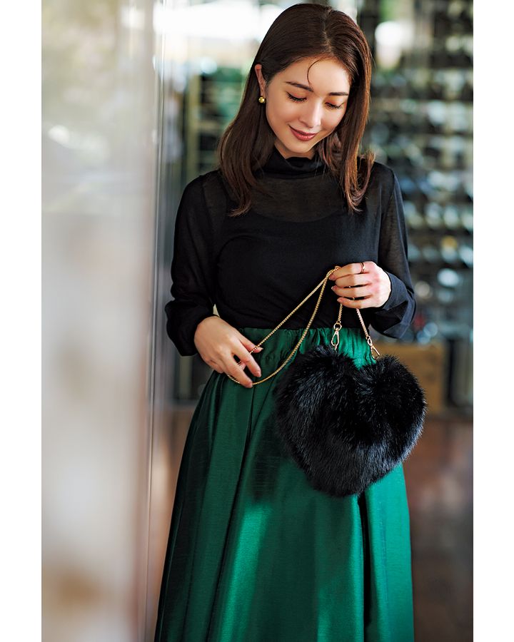 まるでリアルフォックスファーのようなリッチな表情のハートバッグは、ファーメーカーが発信するからこそのクオリティ。スマホやリップ、カードも入り、見た目以上の収納力でキュートさに加え実用性も優秀です。