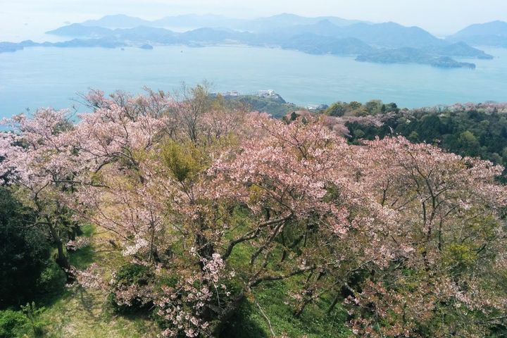 少し中級者向けのルートとしておすすめなのが、岩城島の積善山(せきぜんざん、標高370m)。なかなか体力が必要なヒルクライム(自転車で坂を上がること)が強いられますが、山頂の展望台からの眺めは絶景!特に春、桜と瀬戸内海の織りなす風景は圧巻です。
