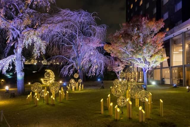 ホテルの建物の緑に囲まれた日本庭園も様々なライトアップが施されて、夜景散策にピッタリ。3棟のホテルには外来客も利用できるレストランやバーがそろうので、冬のデート&ディナーにおすすめです。