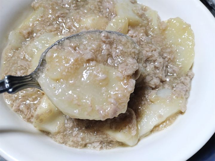 味付けはめんつゆのみですが、ひき肉の旨味が染み出ているので、甘味を増したかぶと相性抜群。とろみがついて冷めにくいので、冬の食卓にピッタリな一品です。