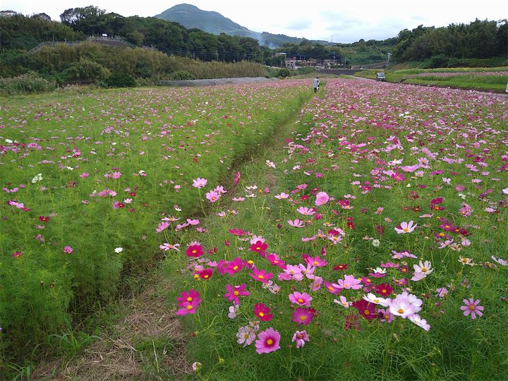 最初は緑肥として植えていたコスモスでしたが、今では観光スポットになるほど広がっています。近くを走るJR指宿枕崎線とコスモス畑の織りなす風景が美しいと、とある雑誌の表紙にもなりました。