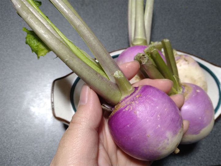 普段、何気なく手に取っている方も多いと思いますが、かぶを選ぶ際は、艶があるものを選んでください。また、ひび割れや傷が入っていないものを選びましょう。葉が付いた状態のものでしたら、葉が青々していて茎の部分が硬くしっかりしているものが新鮮な証です。