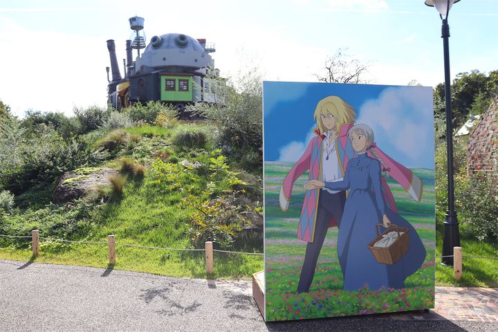 「ハウルの城」を背景に設置されているので、まるで映画の世界に入り込んだような写真が撮れますよ♪