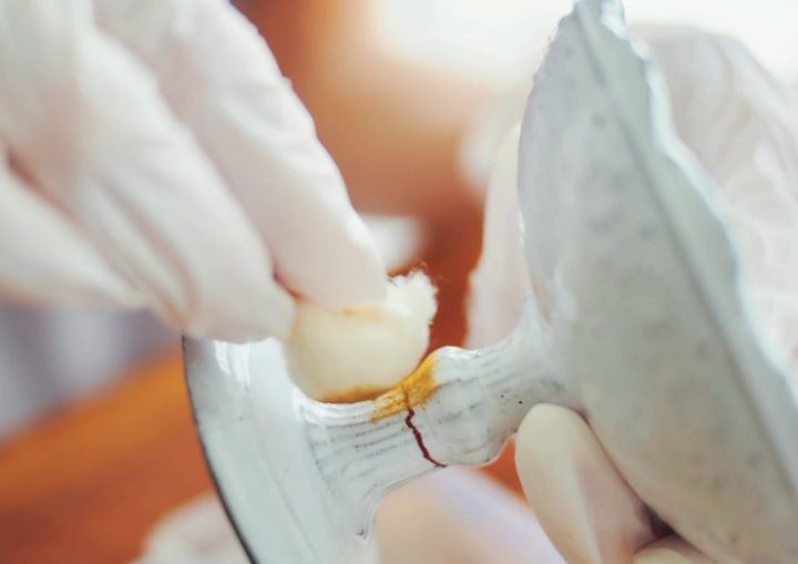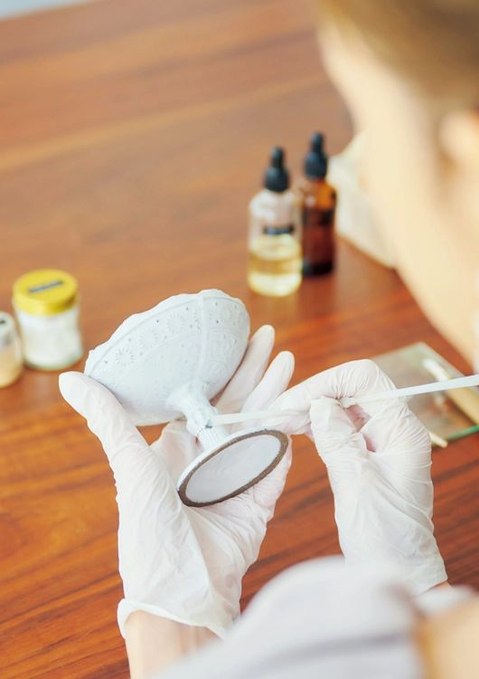 温度20〜30℃前後、湿度70〜85%の環境で硬化させる。金継ぎは一朝一夕で仕上がるものではなく、ゆっくり育てていくのも楽しみのひとつ。