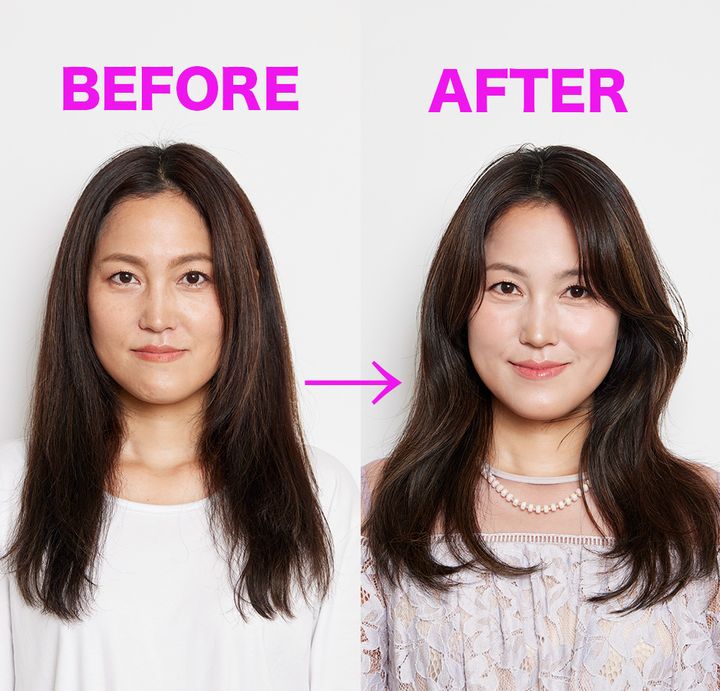 【BEFORE→AFTER】顔まわりのカールでフェイスラインをカバー。華やか美女に変身!