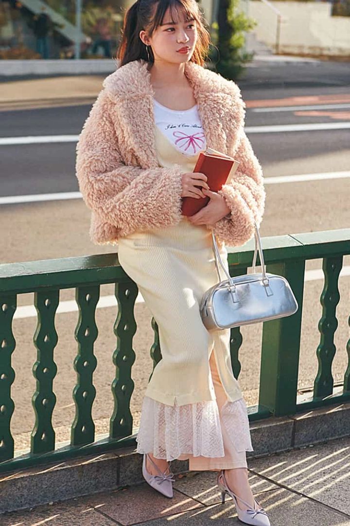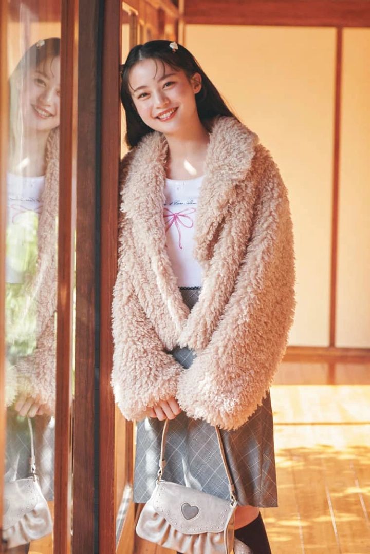 ボリュームのあるファーは、まるでプードルみたいにキュート♡ ショート丈で野暮ったく見えないのがうれしい。