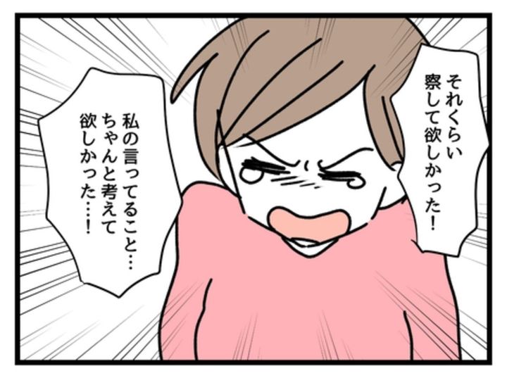 すり合わせがないまま「察して」と怒りをあらわにするキリコと、「それくらいいいじゃん」と歩み寄らないてつお。不満が爆発して初めて、お互いが大きく食い違ったままだったことに気づきました。