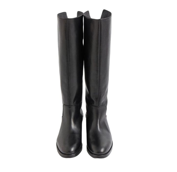 黒バックスリットロングブーツ(3)/Little One Vintage(Shinzone ルミネ新宿店) 厚みとツヤが美しいイタリアンレザーを使用。背面のスリットは切れ味を生むだけでなく、動きやすくする利点もあり。スキニーなどをINしたときも締めつけはなし。