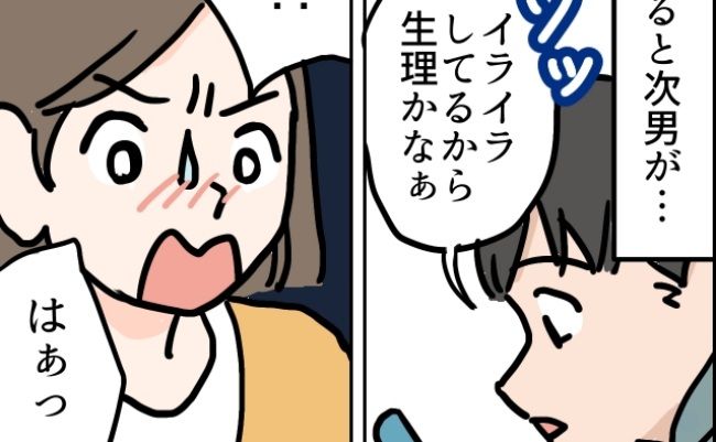 しかし……。それ以降、私が不機嫌だったり、何か怒ったように注意すると、次男は「きっと生理なんだな」と独り言を言うように。