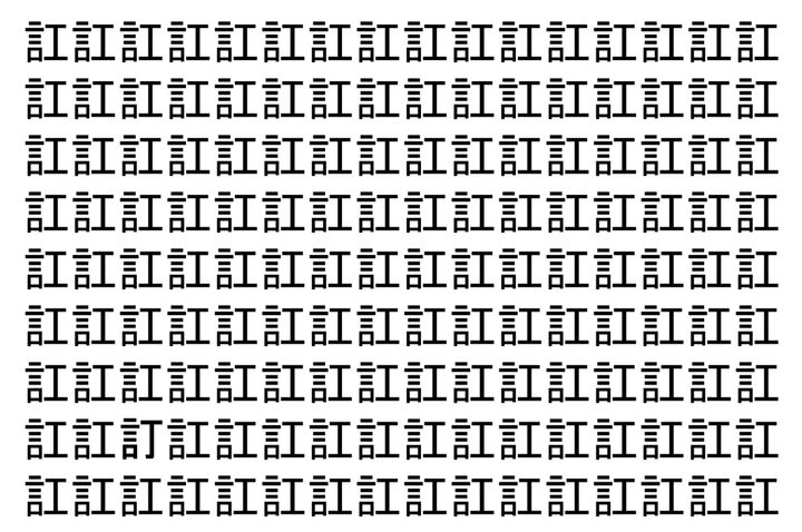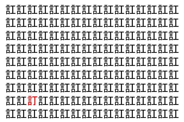 画像の中には、「訌」という漢字が縦に9行、横に16個並んでいます。 全部で144個となりますが・・・、そのうち1つは「異なる漢字」となってますよ!!